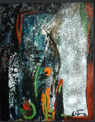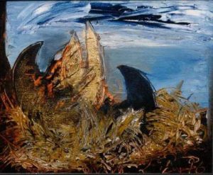 Çürüyen kaportalar, parçalanmış araba parçaları arasında bir yaşam arayışı zaman zaman resimlerine ve seramiklerine giren canlılarla ifadesini bulur.